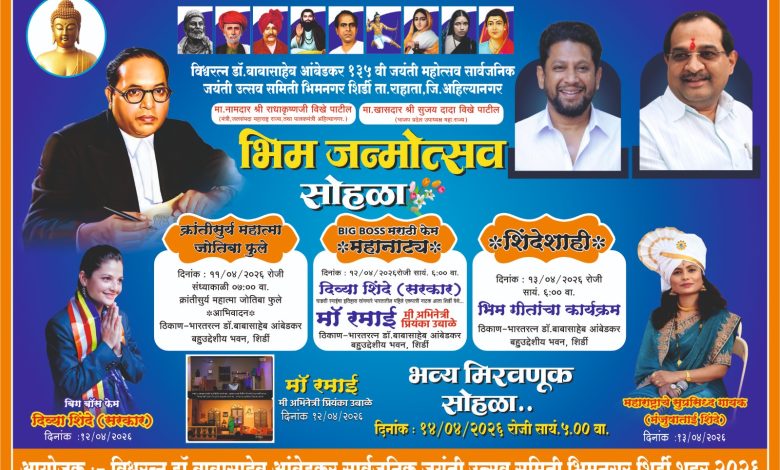 शिर्डी (प्रतिनिधी) विश्वरत्न डॉ. बाबासाहेब आंबेडकर १३५वी जयंती महोउत्सव सार्वजनिक उत्सव समिती भिम नगर शिर्डी…