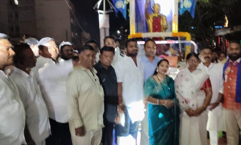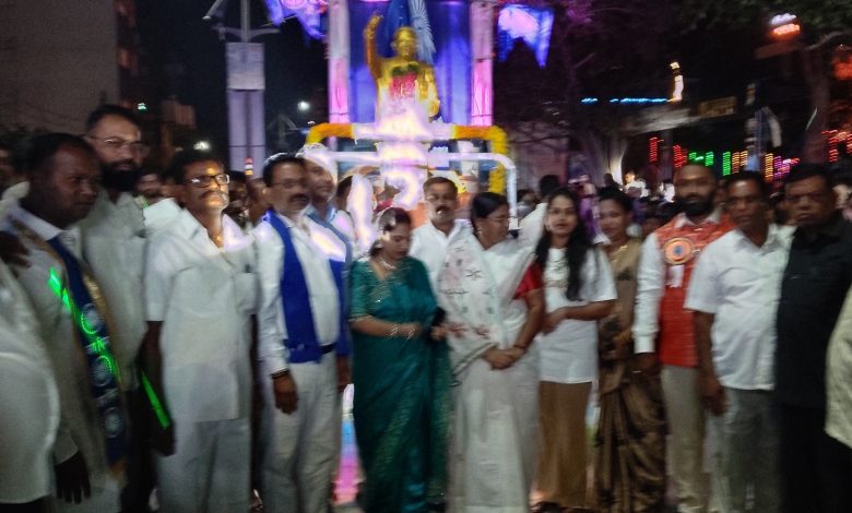 डॉ. बाबासाहेब आंबेडकर उत्सव समिती भीम नगर तर्फे डॉ. बाबासाहेब आंबेडकर प्रतिमेची मिरवणूक प्रारंभ लोकनियुक्त प्रथम महिला नगराध्यक्ष जयश्रीताई थोरात यांच्या शुभहस्ते तसेच नगरसेवक सचिन भाऊ गायकवाड नितीन धिवर सामाजिक कार्यकर्ते यांच्या मार्गदर्शनाखाली मोठ्या भव्य व दिव्य मिरवणूक सोहळा मोठ्या उत्साहत संपन्न