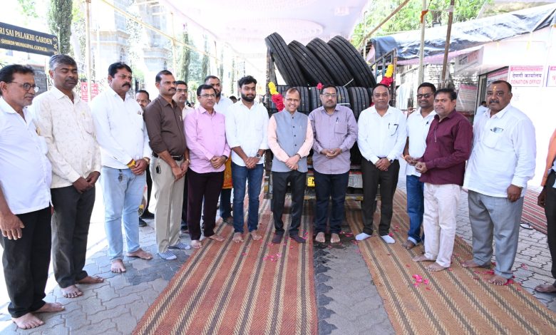 शिर्डी (प्रतिनिधी) श्री साईबाबांच्या समाधीचे दर्शनासाठी देश-विदेशातील लाखो साई भक्त शिर्डीला येत असतात. श्री साईबाबांवर भाविकांची अढळ श्रद्धा असून भाविक मोठ्या भक्ती भावाने श्री साईबाबांच्या चरणी विविध स्वरूपात उदंड दान अर्पण करत असतात. याच श्रद्धेपोटी पुणतांबा येथील दानशूर साई भक्त श्री विलासराव दुरगुडे यांनी ०२ लाख ९९ हजार ९९९ रुपये किमतीचे अपोलो एड्युरंस कंपनीचे १६ नग टायर श्री साई संस्थांनकडे देणगी स्वरूपात सुपुर्द केले . या साई भक्तांचा श्री साईबाबा संस्थान विश्वस्त व्यवस्था शिर्डीतर्फे श्री साईबाबा संस्थान चे मुख्य कार्यकारी अधिकारी मा. श्री गोरक्ष गाडीलकर यांच्या हस्ते सत्कार करण्यात आला.