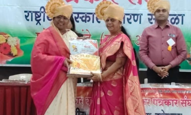 नाशिक (प्रतिनिधी) दर्पण कार बाळशास्त्री जांभेकर पत्रकार संघ तसेच संघाचे राष्ट्रीय अध्यक्ष डॉ. महेंद्र देशपांडे यांच्या मार्गदर्शनाखाली भव्य व दिव्य असा जागतिक राष्ट्रीय महिला दिनानिमित्त सामाजिक, राजकीय, क्रीडा अशा अनेक क्षेत्रात उल्लेखनीय कार्य करणाऱ्या महिलांचा दामिनी राष्ट्रीय पुरस्कार देऊन सन्मानित करण्यात आला. त्या पुरस्कार समारंभासाठी अनेक राज्यातून तसेच जिल्ह्यातून अनेक महिलांनी मोठ्या प्रमाणात सहभाग नोंदवला या कार्यक्रमात अनेक क्षेत्रातील मान्यवर उपस्थित होते त्यांचे हस्ते जागतिक महिला दिनानिमित्त हा दामिनी राष्ट्रीय पुरस्कार देण्यात आला. यामध्ये लोकनियुक्त शिर्डी नगर परिषदेच्या नगराध्यक्षा रणरागिनी मा. सौ जयश्रीताई थोरात यांनी सामाजिक व राजकीय क्षेत्रात तसेच जनसेवा फाउंडेशनच्या माध्यमातून उल्लेखनीय कार्य केल्याबद्दल दर्पणकार बाळशास्त्री जांभेकर पत्रकार संघाच्या वतीने राष्ट्रीय अध्यक्ष डॉ. महेंद्र देशपांडे यांच्या हस्ते नाशिक येथे दामिनी राष्ट्रीय पुरस्कार प्रदान करण्यात आला . या दामिनी राष्ट्रीय पुरस्कारामुळे शिर्डी नगर परिषदेच्या नगराध्यक्षा यांचा अनेक स्तरातून कौतुक व शुभेच्छाचा वर्षाव करण्यात आला.