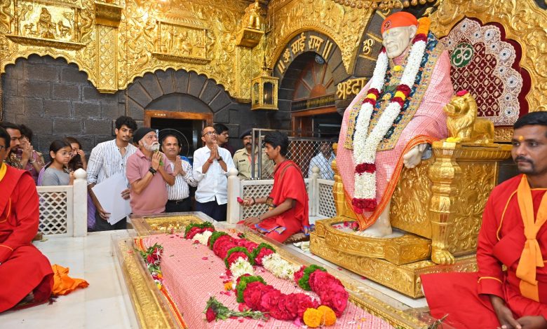 प्रसिद्ध चित्रपट अभिनेते संजय मिश्रा तसेच आगामी चित्रपट तेरा साई या चित्रपट टीमने घेतले श्री साईबाबांच्या समाधीचे दर्शन